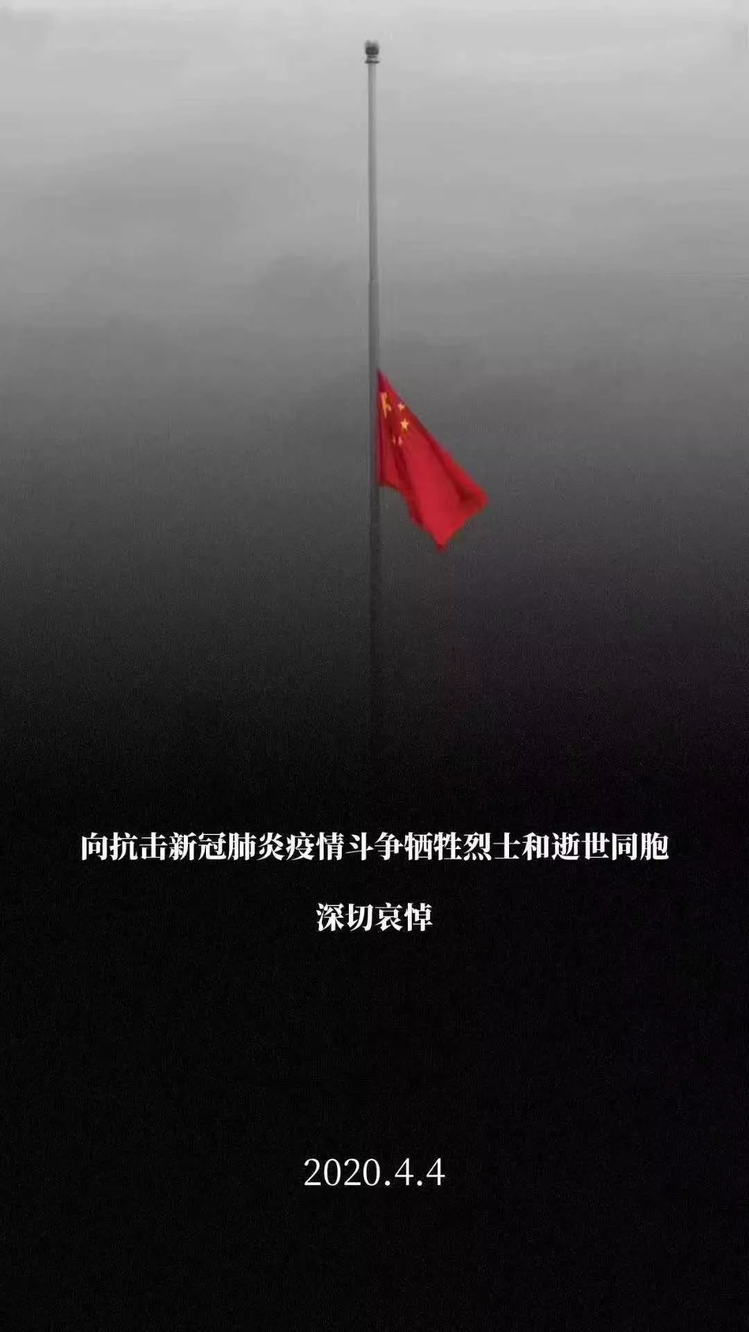 4月4日,天安门广场国旗升起后举行下半旗仪式,向抗击新冠肺炎疫情斗争牺牲的烈士和逝世的同胞表示深切哀悼。—致敬英雄,缅怀逝者,愿天堂没有病痛!